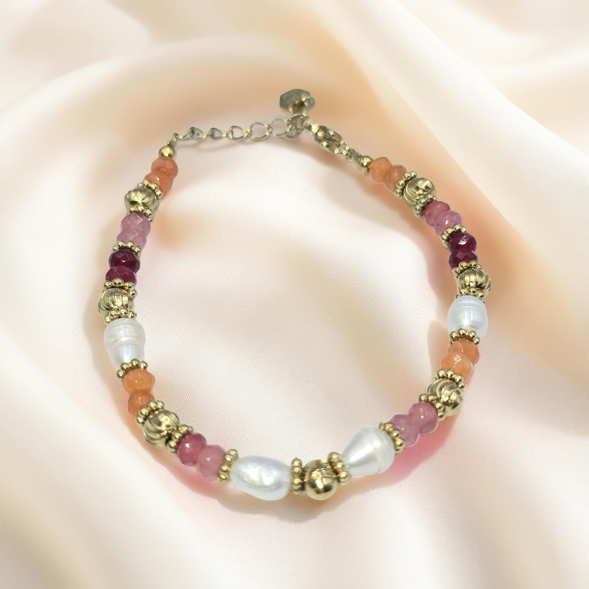 Collier AZALÉE Nacre Fleurs Forme Y Acier Inoxydable Doré | Or et Âme Bijoux